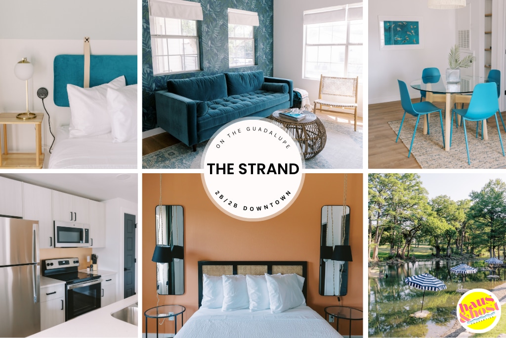 Welcome to The Strand, located in downtown New Braunfels on the Guadalupe River! The Strand is a stylish 2-bedroom, 2-bath gem tucked along the Guadalupe River. As part of Cation on the Guadalupe, this vibrant second-floor retreat blends boho charm, and laid-back luxury! Step out onto your private balcony, perfect for coffee or cocktails—The Strand is your perfect place to relax, recharge, and unwind. Please note: This unit is in Building One, facing the parking lot.