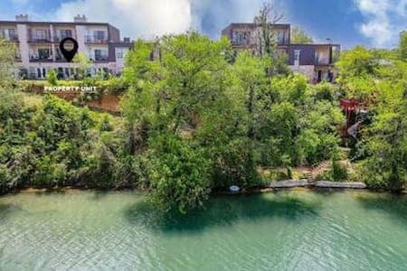 Walking to schlitterbahn !!Lovely decorated 2 bedrooms condo! with 2 super comfortable Tommy Bahamas king beds ,plus sofa beds ! Comfortably sleep 6 peoples each room has view of the Comal river ,river front balcony!not every condo has view like this.outdoor tables ,bbq grill!swimming pool by the river!walking distance to charming downtown New Braunfels ,where there are many shops, live music and excellent restaurants to dine out!please reach out for any questions! I will love to hear from you!