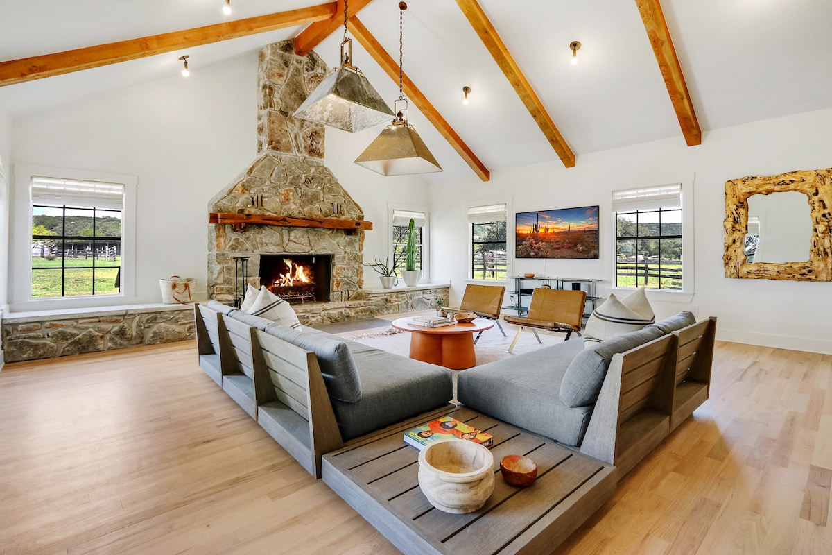 NEW for 2025! 16' x 35' swimming pool, hot tub, and 6' water slide Immerse yourself in the tranquil beauty of Montesino Ranch, where modern comfort blends seamlessly with the natural charm of an organic farm. Nestled beneath towering 100-year-old oak trees and overlooking the vibrant patchwork of our nine-acre farm, our accommodations offer the perfect setting for your dream vacation. Hike, bike, & explore on over 225 acres, then cool off with a dip in the Blanco River or swimming pool!