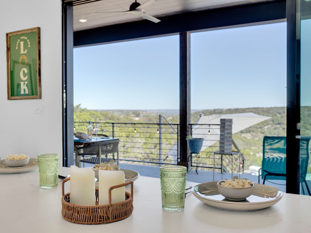 Want to feel as though you're staying in the mountains, but remain local to Texas? This is the spot for you. As you enter the property, you will drive up a hill that winds around a forestry of trees surrounding the property. At the top of the hill, you will be greeted by a modern home towering over the trees to provide an unforgettable view that overlooks rolling hills as far as you can see. It is truly a magical experience offering rest from the daily grind of normal life.