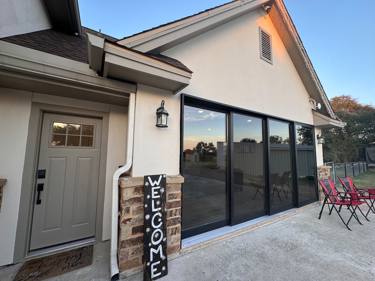 Welcome to Double E Acres! Our carriage house is nestled on a beautiful gated farm in Hill Country. A great place to unwind and feel like you're away from it all while being just a short ten minute drive to shops and dining in downtown Wimberley. Please note that we truly are in the country, set back into a neighborhood that used to be a cattle ranch! The closest restaurant/gas station/grocery store is 10 minutes or so away.