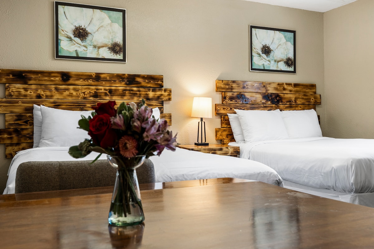 Just 5 mins from downtown Wimberley, this charming boutique room at The Bygone Hotel is the ultimate spot for a girls’ getaway or bachelorette weekend. With sweeping views of the Texas Hill Country, two comfy queen beds, and a cozy, stylish vibe—it’s perfect for sipping champagne, snapping pics, and making unforgettable memories with your besties.