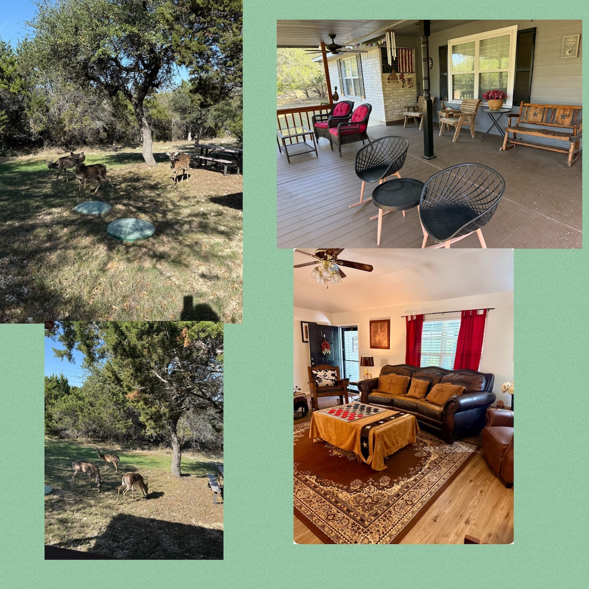 Enjoy watching deer, birds, sunsets, stars and relax. Pet friendly, 2 pets max, fast wifi, Casita on the Ranch 2, a gated private home nestled in the oaks on our 90 acre ranch near the main home. Enjoy your own fire pit, charcoal grill & relaxing on the porch. Lots of room for the kids to run and play. We are 20 min to Canyon Lake, 5 minutes to Hidden Falls, 30 min to New Braunfels or SanAntonio and 20 minutes to Park 31. More fun? Fused glass & skeet shooting available. Come on out,Welcome!!
