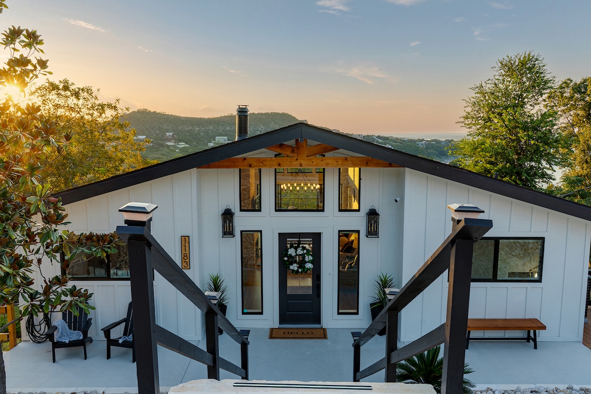 Want to feel as though you're staying in the mountains, but remain local to Texas? This is the spot for you. As you enter the property, you will drive up a hill that winds around a forestry of trees surrounding the property. At the top of the hill, you will be greeted by a modern home towering over the trees to provide an unforgettable view that overlooks rolling hills as far as you can see. It is truly a magical experience offering rest from the daily grind of normal life.