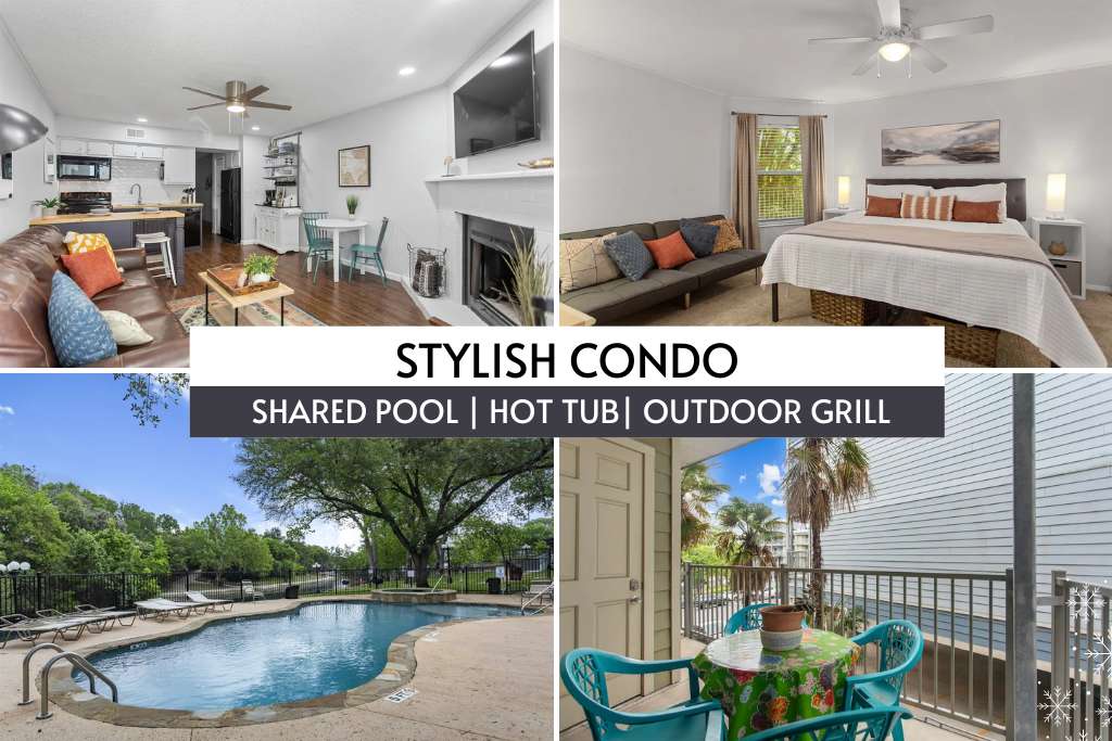 Welcome to The Wet Feet Retreat! This chic Comal riverfront condo in the heart of downtown New Braunfels offers a perfect blend of modern comfort and dreamy elegance. 2 bedrooms and 2 bathrooms, enjoy the best private river access on the Comal, a refreshing pool with river views, and easy strolls to downtown hotspots. Just steps across from Schlitterbahn waterpark and a short drive to Gruene, immerse yourself in the vibrant spirit of New Braunfels at The Wet Feet Retreat!