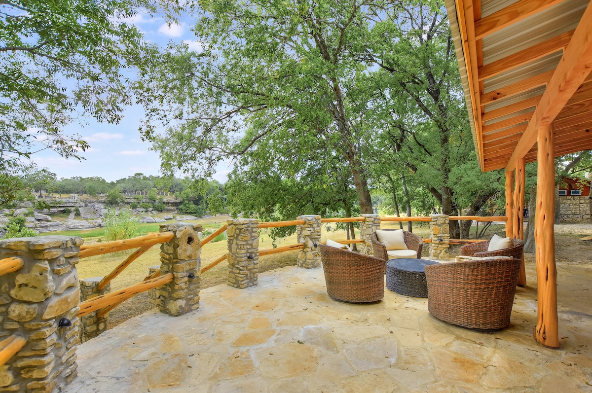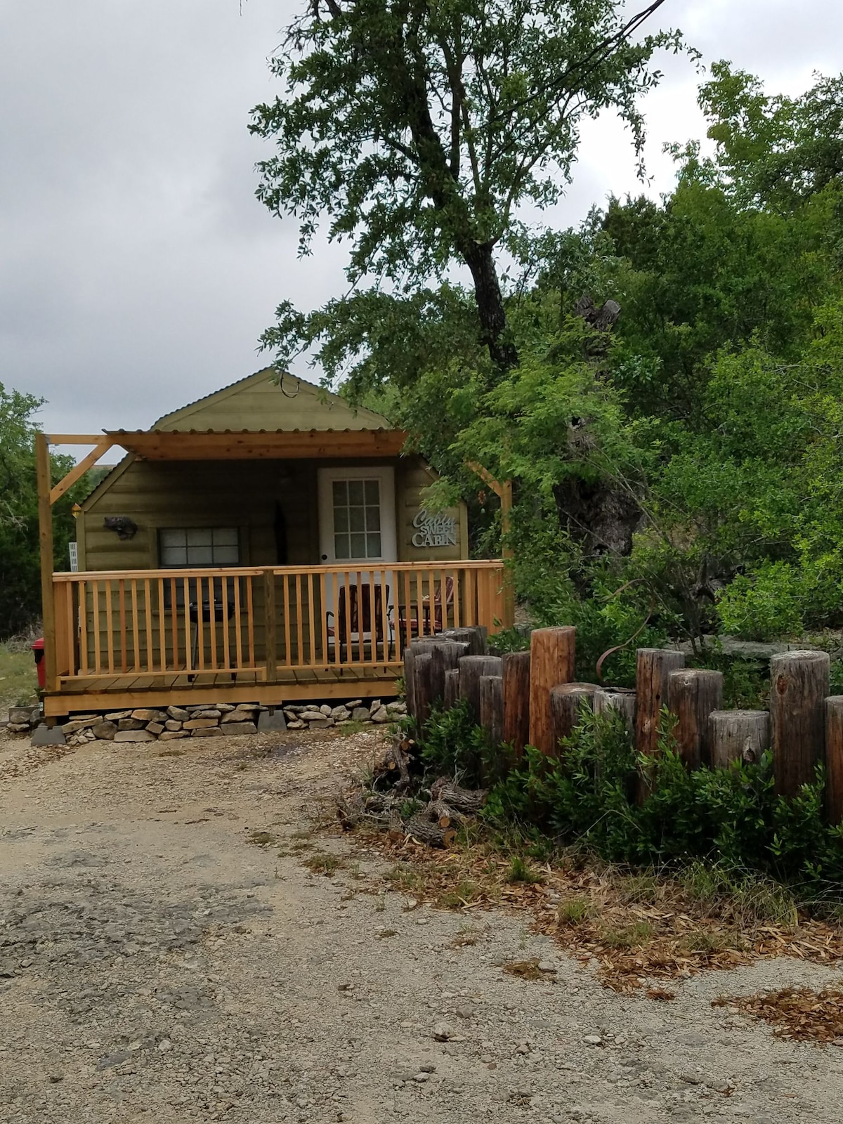 Efficiency Studio Cabin w/ private HOT TUB. Great dining & location! Cozy, country feel, w/ city conveniences. A 4 min drive to swimming, fishing & boating on Canyon Lake. Tubing? River Rd is minutes away. Concerts w/ Willie, Miranda & ZZ Top often performing nearby at White Water Amphitheater. Watch deer graze while rocking on your front porch. Gather around a nice fire at the fire pit steps from the front door. Round out your day BBQ-ing & relaxing in a hot tub-right beside the cabin!
