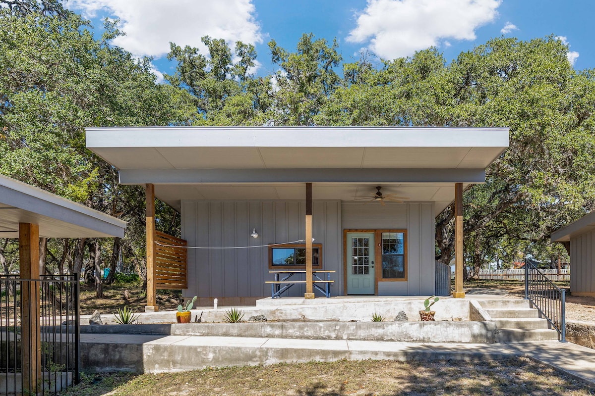 ***Now Offering Couples Massages**** Just two miles from the Horseshoe on the Guadalupe River, this cozy Canyon Lake cottage sits beneath the trees, offering privacy and a great view of Hill Country wildlife. Inside, you’ll find a king and queen bed in two comfy bedrooms, each with its own private bath and shower. The full kitchen makes cooking easy, and you’ll have a dining table for four, washer and dryer, 65” Roku TV, and fiber internet to keep you connected.