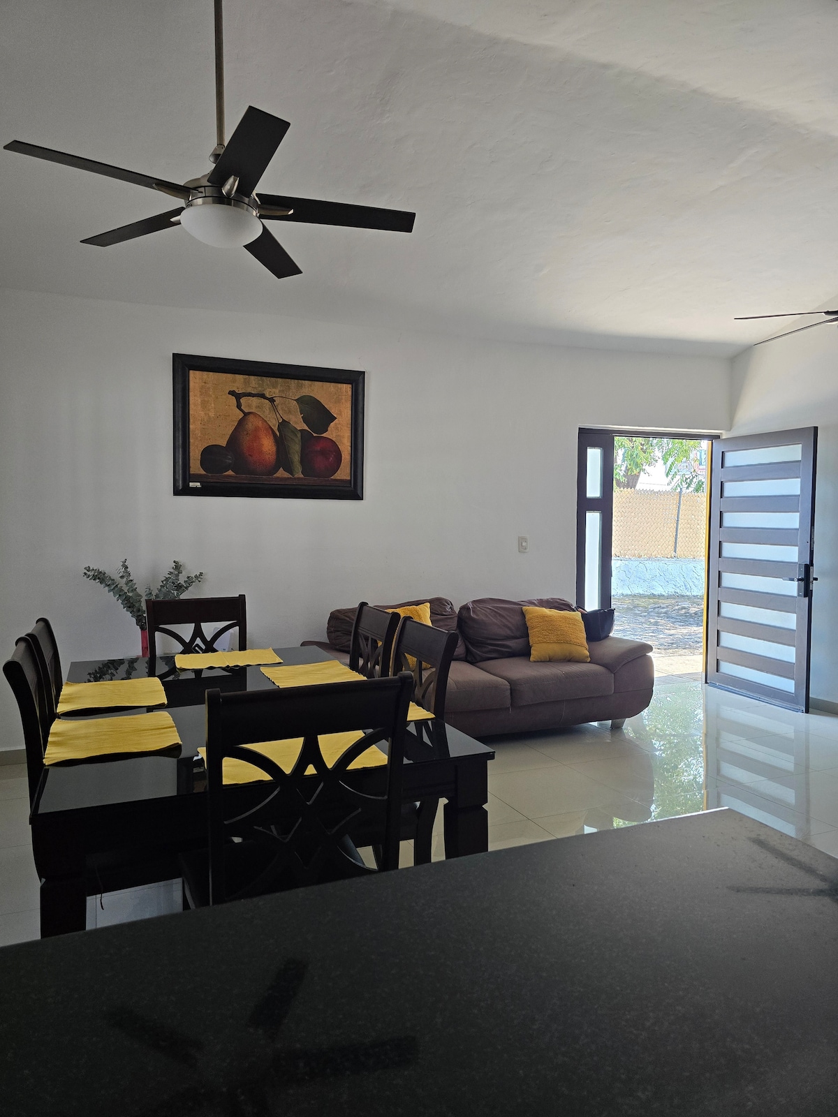 Hermosa y confortable casa nueva , diseño moderno, zona tranquila, cerca centro comercial, con conexión a av. principales, a 5 minutos de Comala, clinica #1 del IMSS y centro de Villa de Álvarez, y a 10 min. del centro de histórico de Colima..casa de dos plantas, en planta baja sala, cocina, comedor y recámara (KS)y baño completo, aire acondicionando (solo en rec. principal planta baja), y en planta alta, dos recamaras con un baño completo, una con cama matrimonial y la otra dos individuales