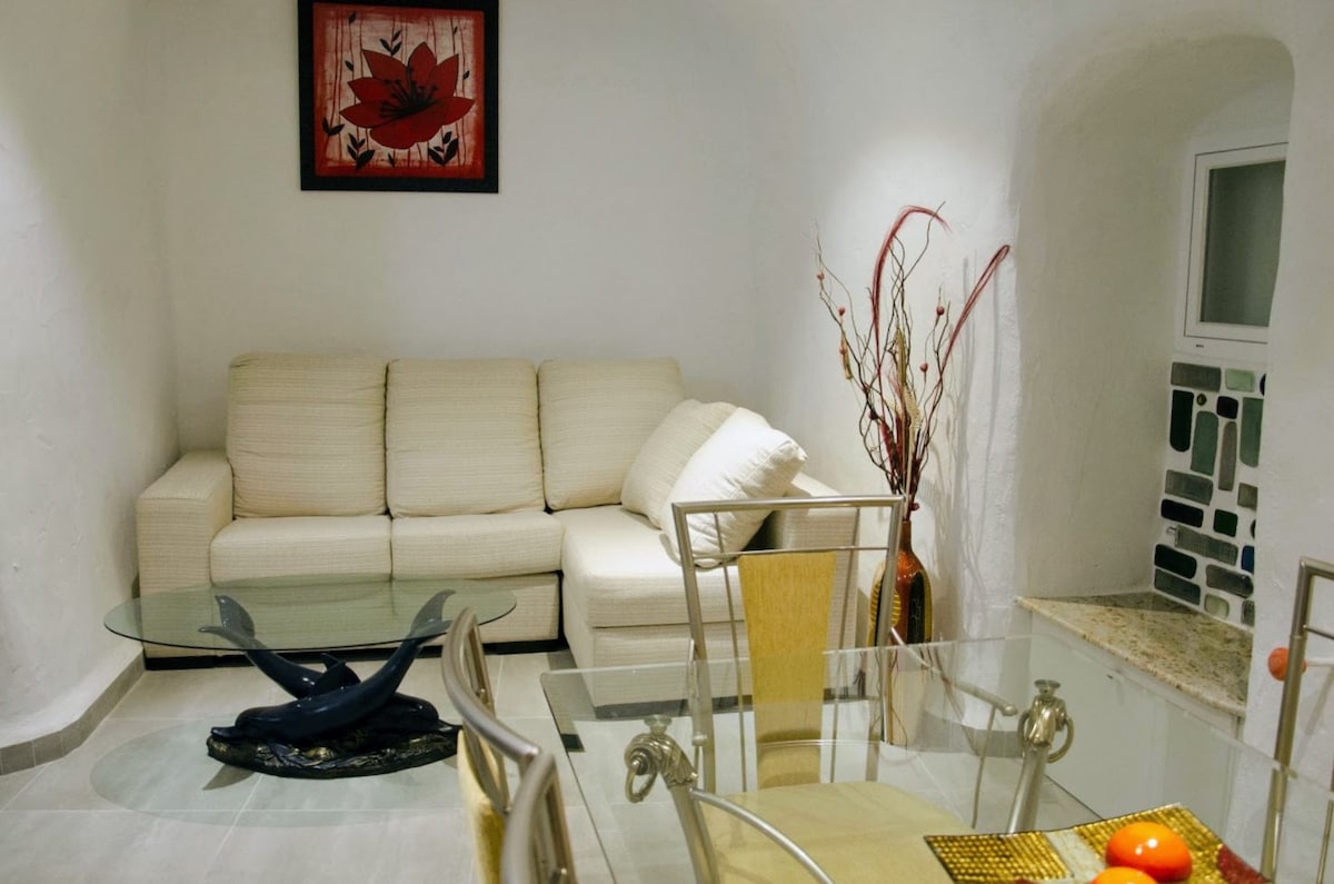 Una cueva con una decoración tradicional, con elementos restaurados y típicos de nuestro pueblo. La cueva cuenta con cuatro dormitorios, dos salones, dos baños y cocina, todo ello totalmente equipado con lo que pueda imaginar. Además cuenta con chimenea en el salón para los días de invierno y barbacoa en la calle para disfrutar del buen tiempo. Se puede aparcar en la puerta del apartamento. Todo ello en planta baja y adaptada para personas con discapacidad.