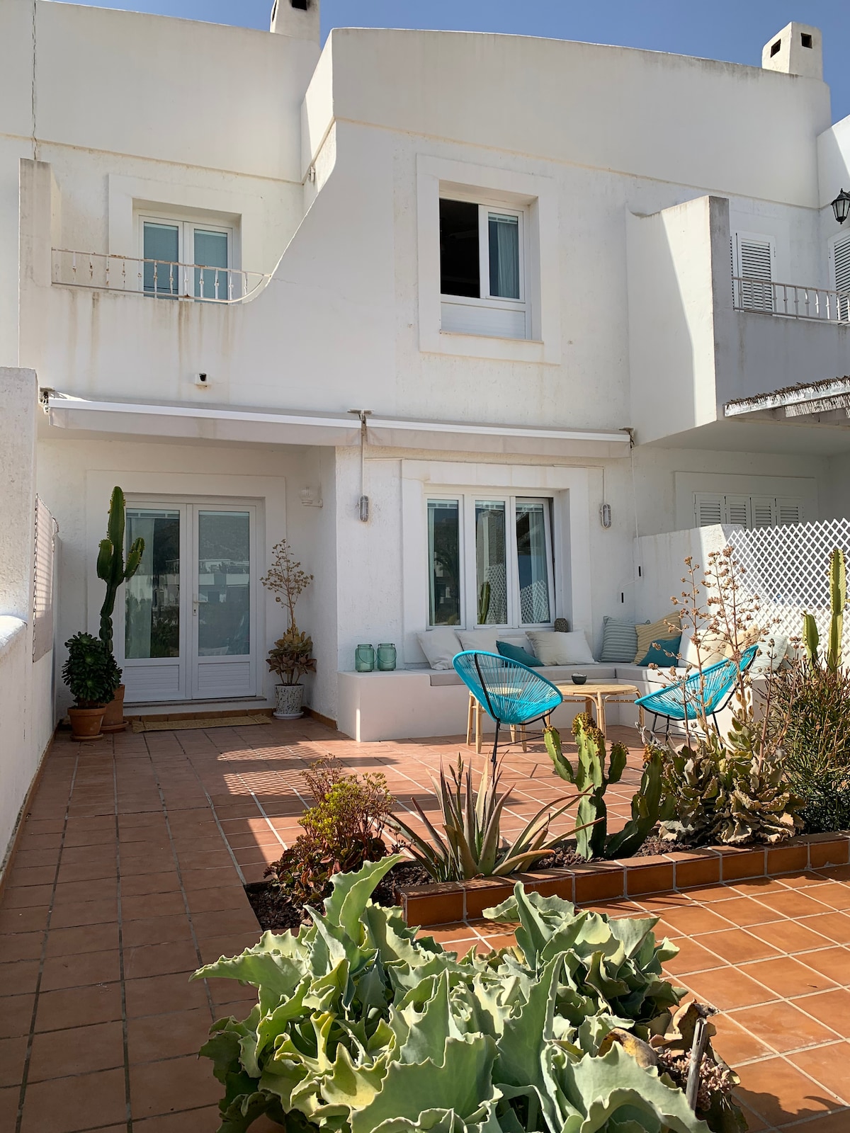 Large sunny terrace with sea views just 50 m from the beach in Mojácar. Enjoy breakfast while the sun rises over the Mediterranean, and relax in a bright, spacious home with carefully designed Mediterranean décor. Comfortable single-level home, perfect for unwinding, remote working, and enjoying the sea breeze just steps from the beach, restaurants and cafés.