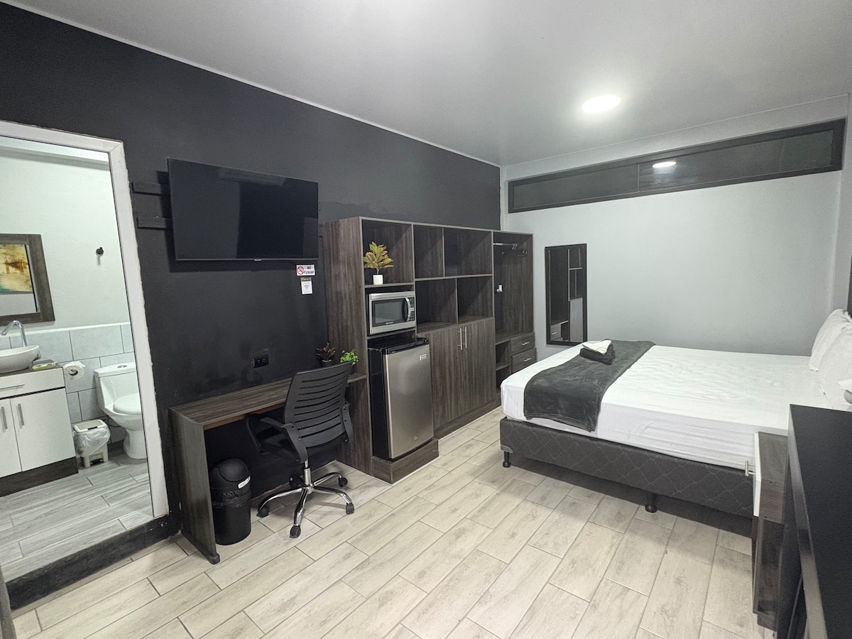 Disfruta del fácil acceso a tiendas y restaurantes desde este encantador espacio para quedarte. Ubicado en Barrio arriba a 1 cuadra de la comixmul en el ultimo piso de plaza bellotas center El desayuno esta incluido!