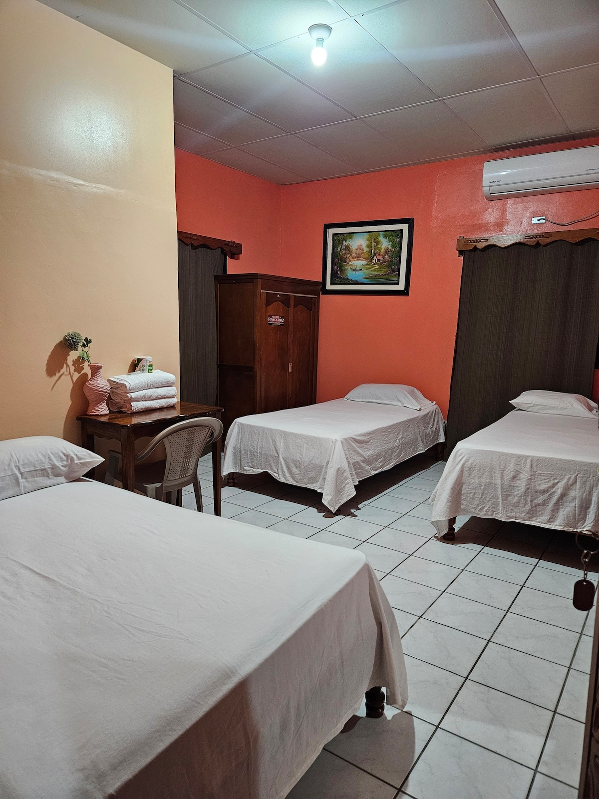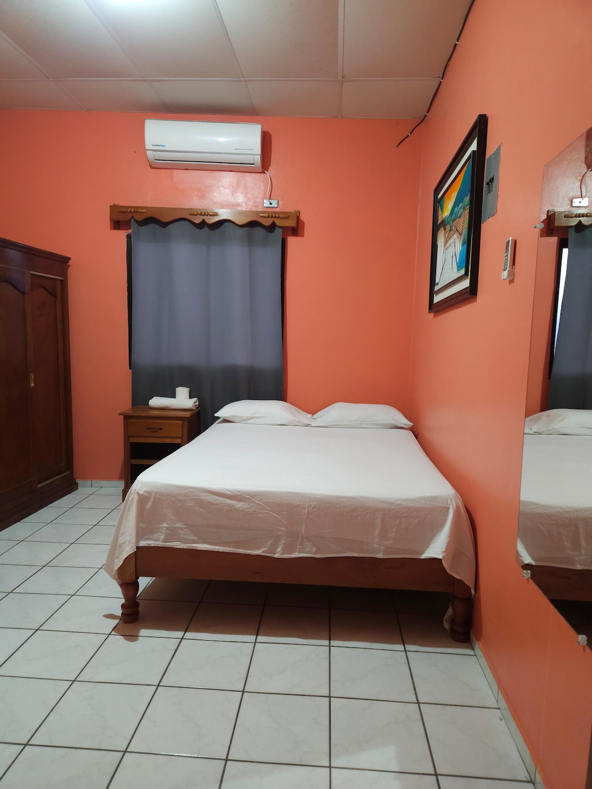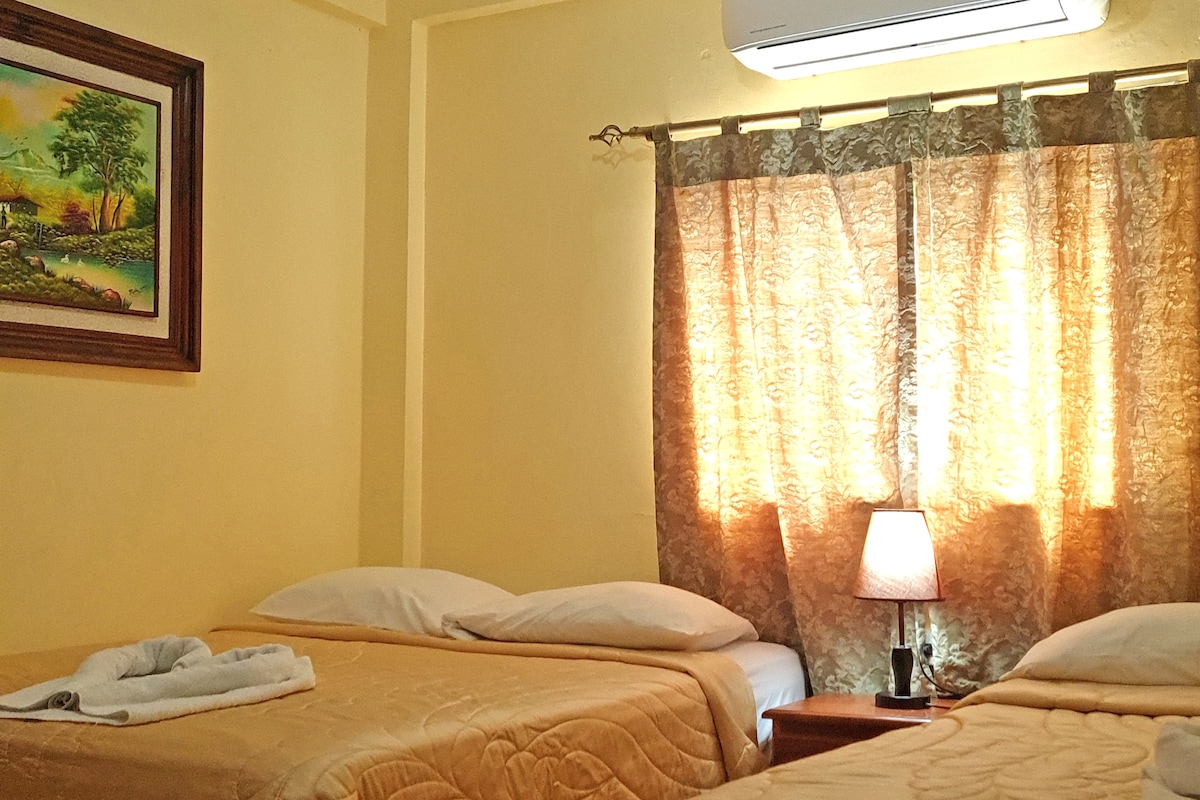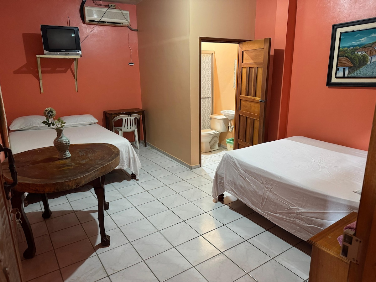 Te ofrecemos una habitación tradicional, encontrarás, una mesa para trabajar, es especial para estadias largar o cortas y para personas con presupuestos tipo Hostal con la diferencia que mi espacio es privado. Incluye: cama matrimonial, baño privado, wifi, tv/cable, aire acondicionado. Estamos a 8 km del aeropuerto internacional Palmerola y pocos minutos del casco histórico de Comayagua. ubicados en zona de comercio con acceso a zona comercial, bancos, mall, hospital, universidad, Comayagua.