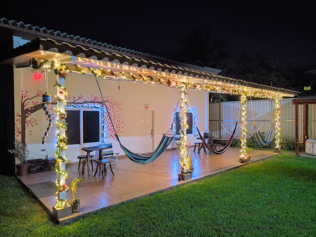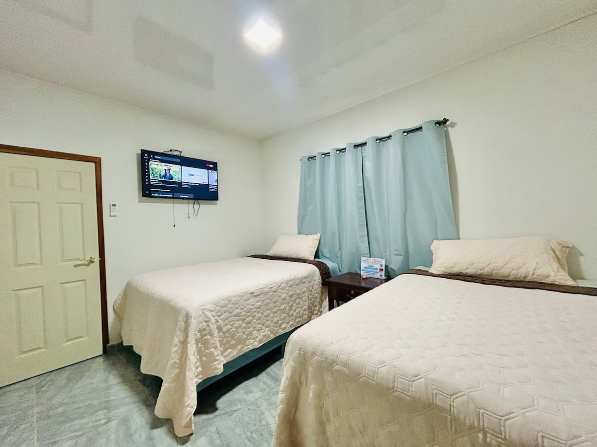 Lleva a toda la familia y amigos a este fantástico lugar con muchas zonas para divertirse y explorar. Wifi☑️ Agua caliente☑️ Aire acondicionado☑️ Tv y clable☑️ Cocina completa☑️ Hamacas para descansar☑️ Áreas verdes☑️ Terreno para caminar y explorar☑️ 4 camas y 1 sofá cama☑️ Zona de Árboles ☑️ Riachuelo para dar un chapuzón ☑️