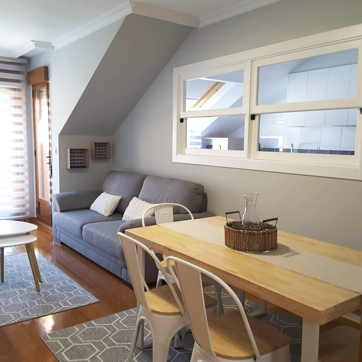 Piso completo a 5 min andando de la playa y a 15 min en coche del centro de Pontevedra. ☕️ Desayuno incluido en la primera noche: café, leche, bollería. • 2 Camas dobles • 1 Litera (camas 1,35cm + 0,90cm) • 2 Baños • Cocina equipada • Lavadora, tendedero y plancha • Check-in autónomo • Calefacción • WiFi gratis • TV y Netflix • Aparcamiento público exterior • Guía local: Turismo + Restaurantes • Taxi privado: aeropuerto y camino Santiago • Hablamos Español e Inglés fluido