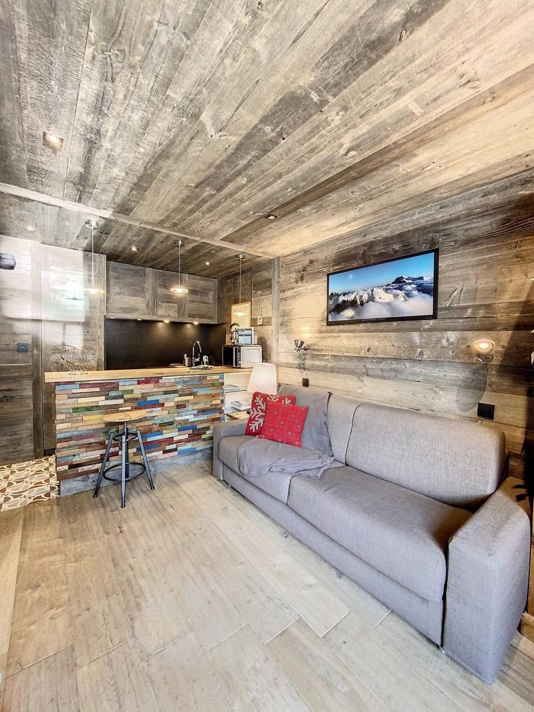 Revitalize yourself in a cocooning atmosphere within the 5* Residence La Cordée and enjoy a wonderful balcony of 20m² offering a 270° summits view. Our apartment can accommodate up to 4 people, it's made up of a bedroom, a bathroom and a living room with an open kitchen. The residence is perfect to relax with its swimming pool, sauna, hammam, fitness and climbing rooms and also enjoy its lounge area (snooker, table football).