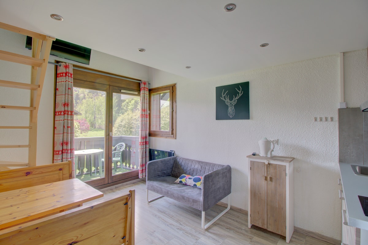 Charmant studio de 18m2 situé dans un espace calme et verdoyant, avec sa terrasse face au Mont-Blanc. Proche de toutes commodités (5mn en voiture du centre). Diverses activités toute l'année : randos, vtt, ski, lac "biotop", pump track, parc thermal... Navettes gratuites depuis l'office du tourisme vers la station de ski. Vous pourrez également admirer notre jolie vallée dans diverses villes environnantes Megève ( 10mn), Chamonix/Italie (30mn), Genève (1h) Fêtes et rassemblements non autorisés.