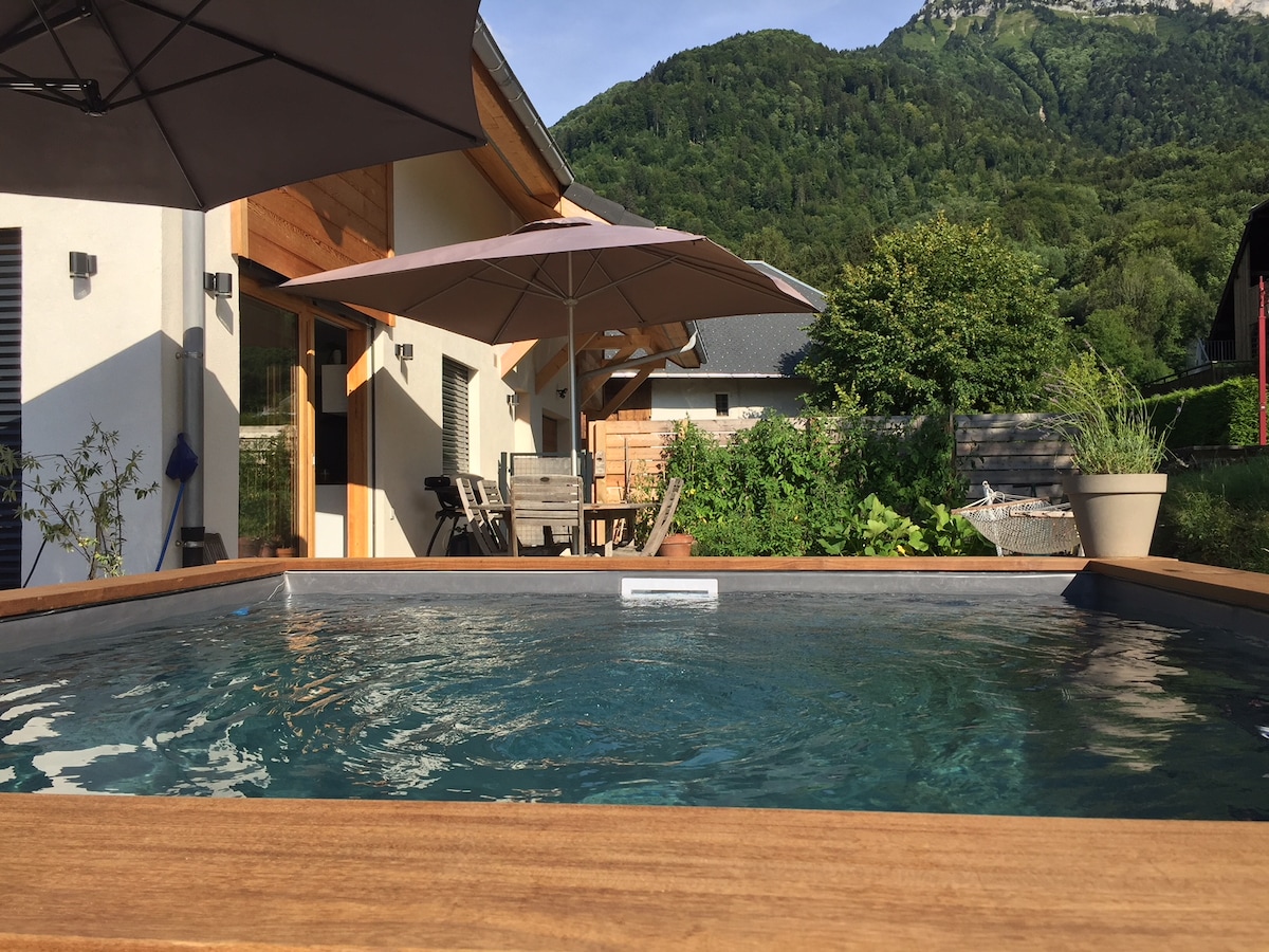 Villa with Heated Pool & Private Spa near Annecy. Treat yourself to a relaxing getaway in this 105 m² villa nestled in a peaceful setting just a few minutes from Annecy. Enjoy the heated pool and private spa all year round — perfect for a wellness retreat, a romantic weekend, or a family holiday surrounded by the mountains. Located between the lake and the ski resorts, this bright and cozy home with a private garden is the ideal place to recharge in every season.