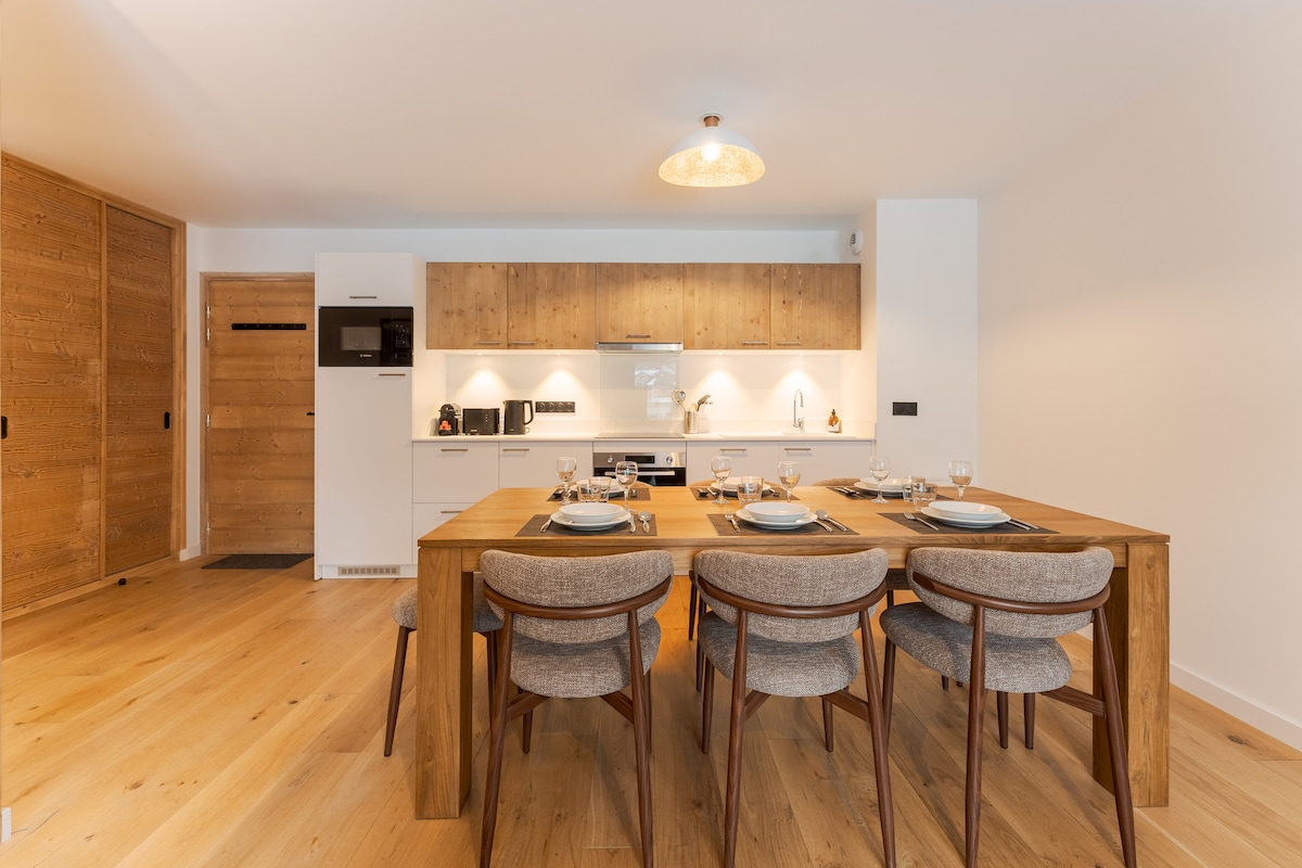 Revitalize yourself in a cocooning atmosphere within the 5* Residence La Cordée and enjoy a wonderful balcony of 20m² offering a 270° summits view. Our apartment can accommodate up to 4 people, it's made up of a bedroom, a bathroom and a living room with an open kitchen. The residence is perfect to relax with its swimming pool, sauna, hammam, fitness and climbing rooms and also enjoy its lounge area (snooker, table football).