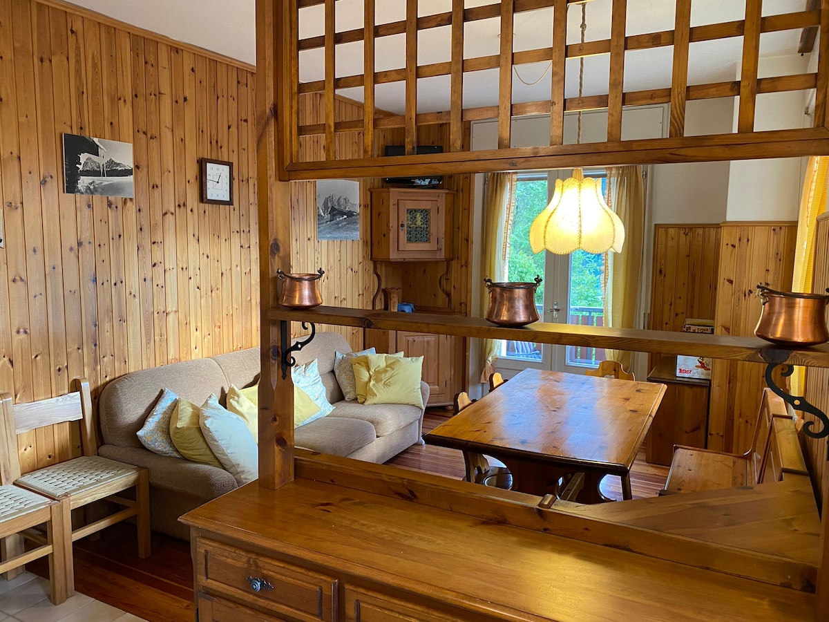 Appartamento mansardato quasi interamente rivestito di legno antico e arredato in modo tradizionale, dotato di zona giorno con ampio divano letto e smart tv, tavolo da pranzo, cucina attrezzata con tutti i principali elettrodomestici compresi forno e lavastoviglie. l punti di forza dell’appartamento sono lo spazioso balcone rivolto a est con vista su Santa Maddalena, per godersi il sole del mattino davanti a una bella colazione, e la nuovissima sauna privata in legno di cirmolo.