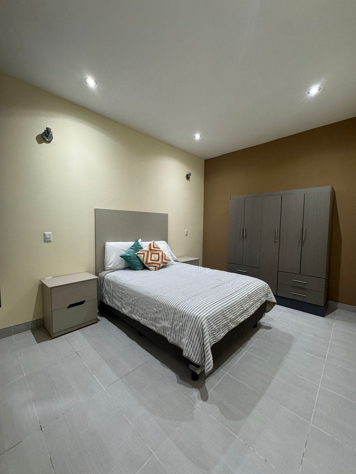 Conócenos! Departamento recién remodelado con estilo moderno, ubicado en una zona céntrica, segura y muy tranquila. Rodeado de comercios, servicios y todo lo que necesitas a unos pasos. Ideal para pasar una noche con comodidad y practicidad.