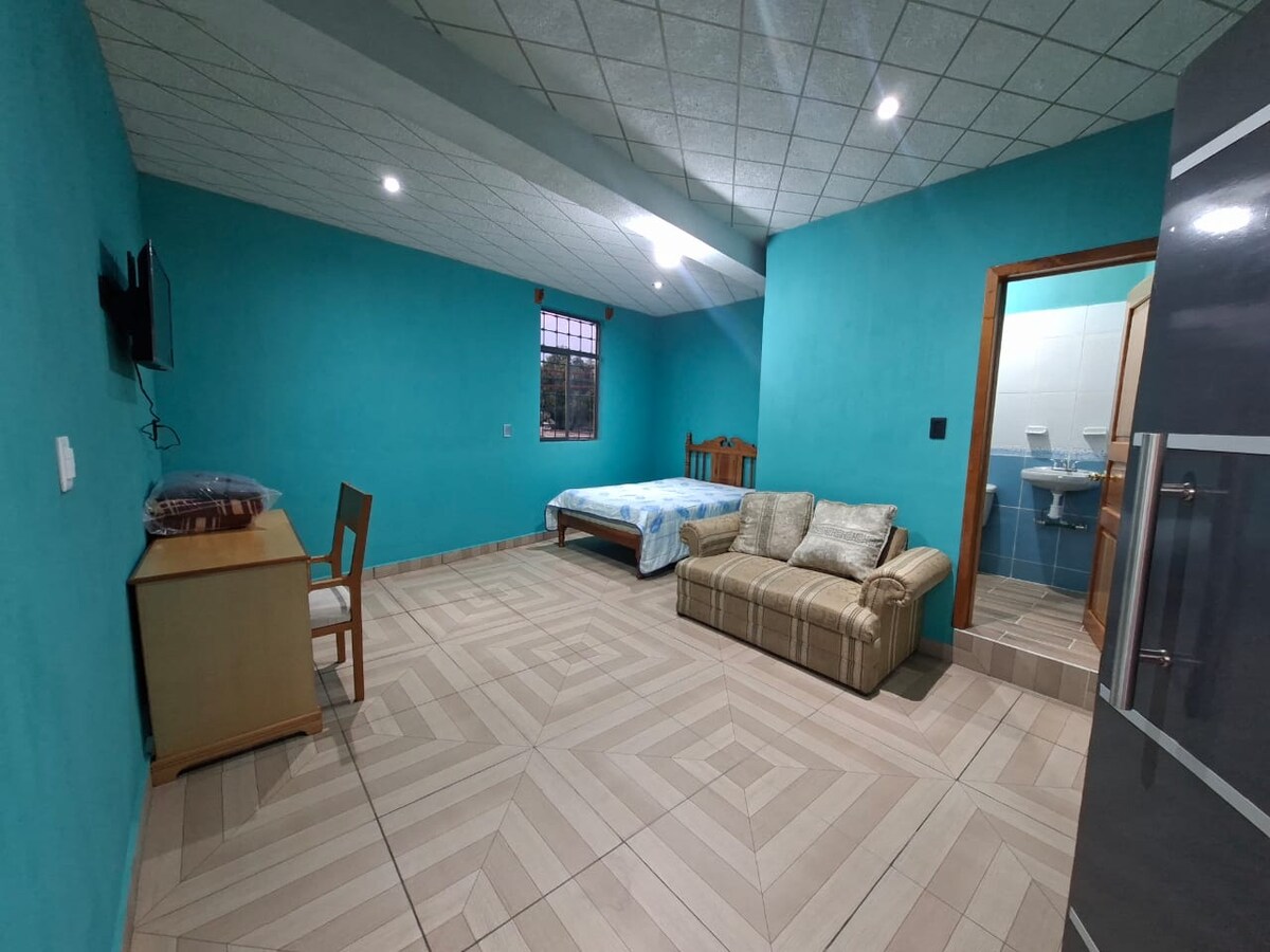Imagine waking up in a cozy, sunlit space just minutes from downtown Comitán, surrounded by nature and a panoramic view of the Meseta Comiteca-Tojolabal plains. Our fully furnished mini-apartment with an independent entrance is the perfect getaway for the eco-conscious traveler, offering all the modern comforts you need.