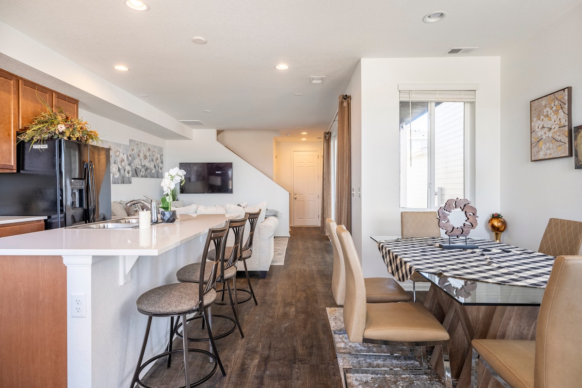 Bring the whole family to this newer home with lots of room for fun. Located perfectly between Denver International Airport & Downtown Denver, this 3 bedroom, 2.5 bath home has everything you need to make your stay in Denver perfect & comfortable, including a main floor primary bedroom. The separate office has double monitors & a dock for easy lap top plug in. Looking to get a quick workout in? Enjoy the Peloton bike in the home or take a quick walk to the fitness center just two blocks away.