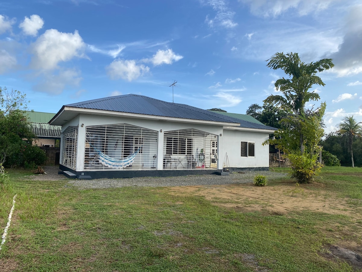 Our house is cozy, safe and peaceful, surrounded by nature and centrally-located at the East-West verbinding. It's 15 minutes from the Jules Wijdenbosch bridge to get to Paramaribo, the capital. You have a chinees restaurant and lots of warungs (javanese restaurants) nearby and there is a supermarket across the street. You can reach Peperpot Nature Resort within minutes. District Commewijne is the place of historical plantations situated at the right banks of the Suriname river.