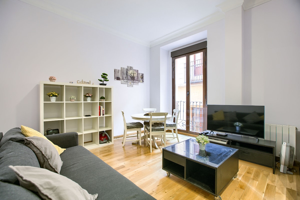 Best location, right in the center of Madrid! In the famous "Barrio de las Letras" - the literary neighborhood. Beautiful, clean apartment with lots of light in a historic building with elevator. Centrally-located with short walking distance (<10 mins) to all the major museums, Plaza Mayor, Royal Place, Puerta del Sol, Gran Via, Parque del Retiro, Atocha train station, etc. This apartment is facing a beautiful and peaceful courtyard. You will love the apartment and our location!