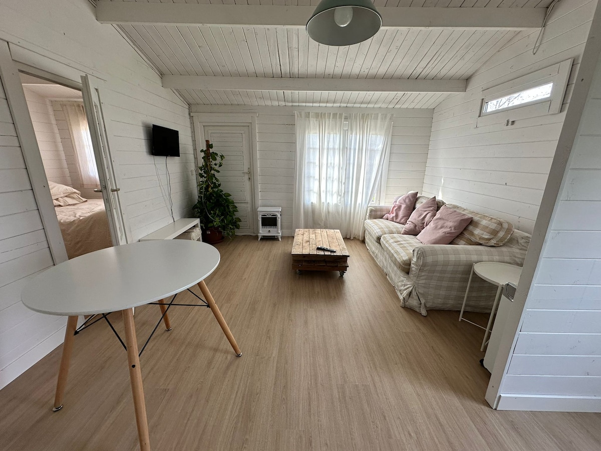 La cabaña está ubicada en una parcela dentro de otra parcela de 3.000 M2 donde hay otras cabañas, y una zona con gallinas, patos,huerto etc. La parecela está totalmente vallada y privada y ocupa una extensión de 400 M2 de los cuales 30 M2 corresponde a la cabaña, Lo mejor de todo es el jardin con el brasero y la barbacoa. La leña, pastillas, cerillas están incluidos en el precio. Tengo bicicletas de montaña que las alquilo para dar una vuelta por el pinar que está al lado