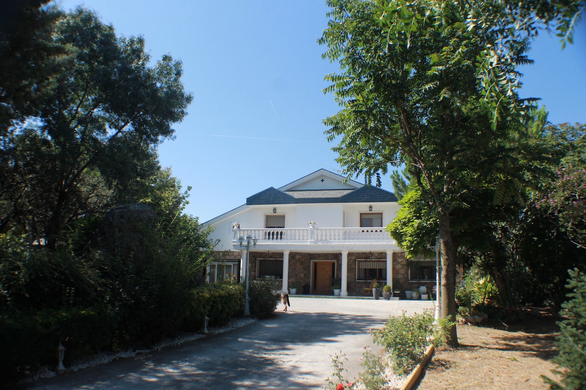 Welcome to your private Oasis in Madrid. Enjoy an exclusive villa ideal for families, groups or couples. Surrounded by nature, equipped to relax, celebrate or simply disconnect. What do we offer in our villa? . Up to 10 guests comfortably. . Private swimming pool with lounges and natural lawn. . Broad garden, perfect for children or relax. . Barbecue area with outdoor table. . Hall with Smart TV, wifi and aerothermia. . Full kitchen equipped with everything you need.