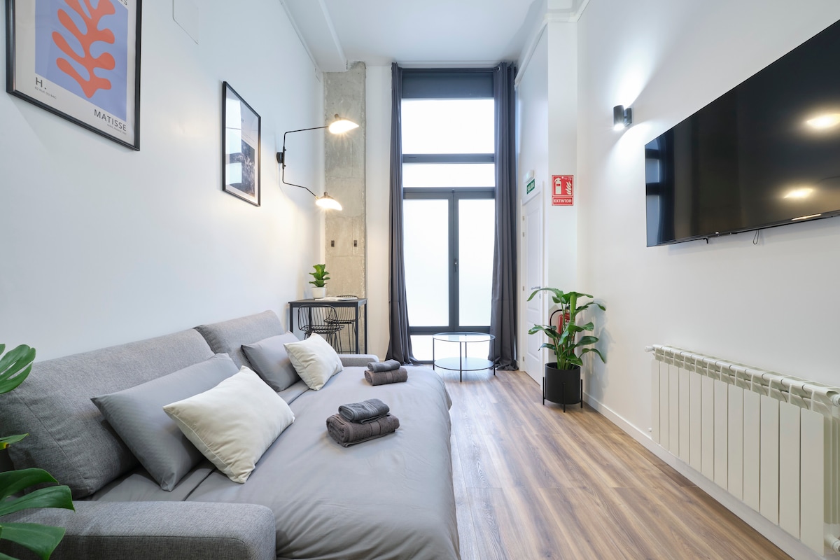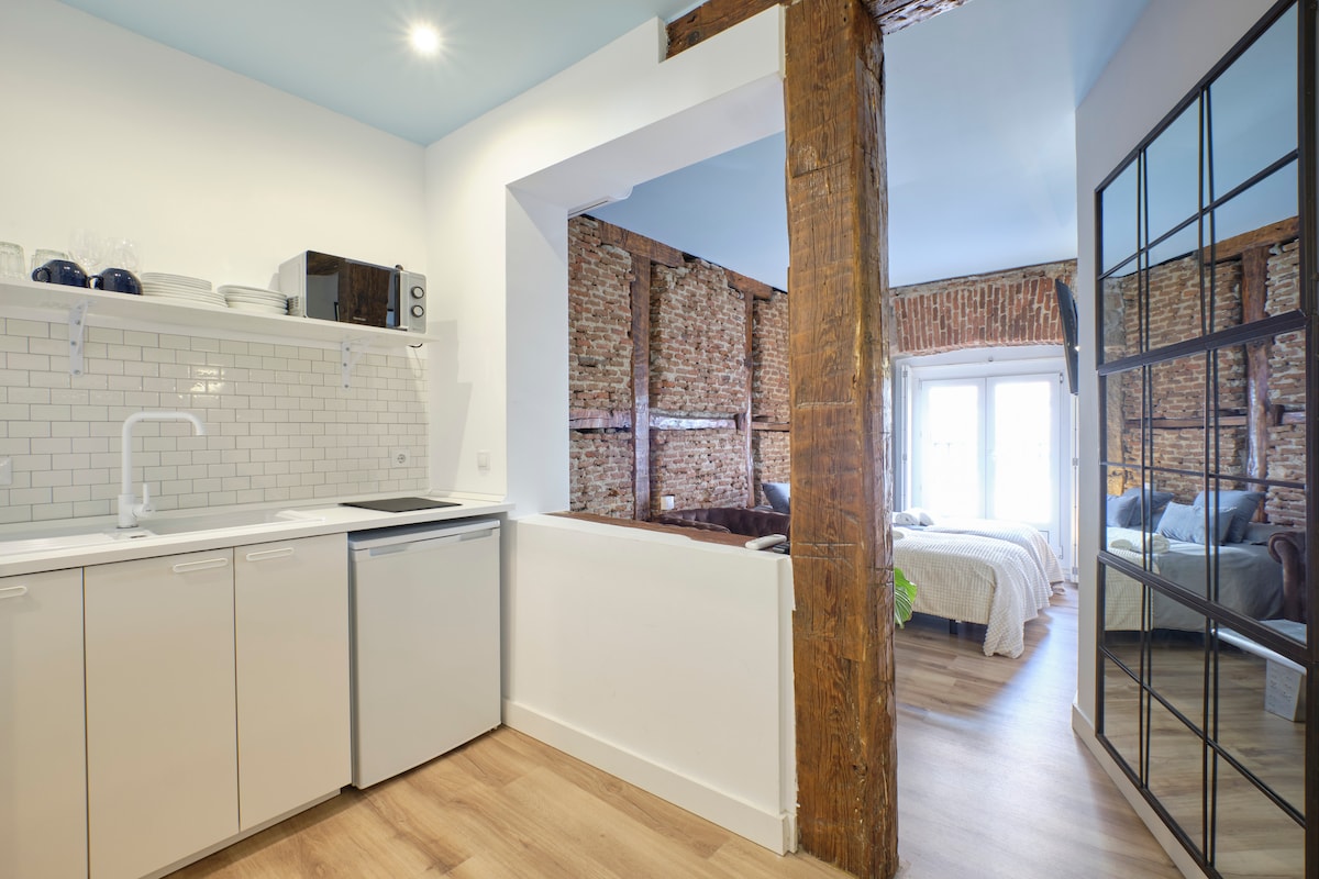 Bright and cozy at the very historical city center.Full equipped with Hi Speed Wifi, Air Conditioning, Central Heating, SmartTV, Fridge, Induction Kitchen, Hair Dryer, etc.Located at Atocha Station Square, in front of Reina Sofia musseumYou will be at the very city center but you will not ear any noise, the studio is Brand new, built with best quality soundproof windows.Terraces, cafeterias, theatres, museums…all inside the neighborhood!