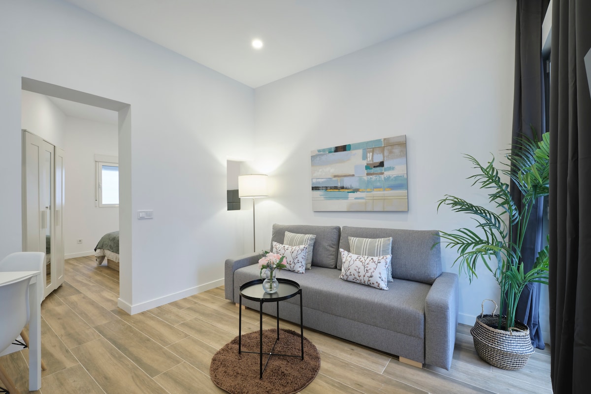 Bright and cozy at the very historical city center.Full equipped with Hi Speed Wifi, Air Conditioning, Central Heating, SmartTV, Fridge, Induction Kitchen, Hair Dryer, etc.Located at 100m from La Latina Metro StationYou will be at the very city center but you will not ear any noise, the studio is Brand new, built with best quality soundproof windows.Terraces, cafeterias, theatres, museums…all inside the neighborhood!