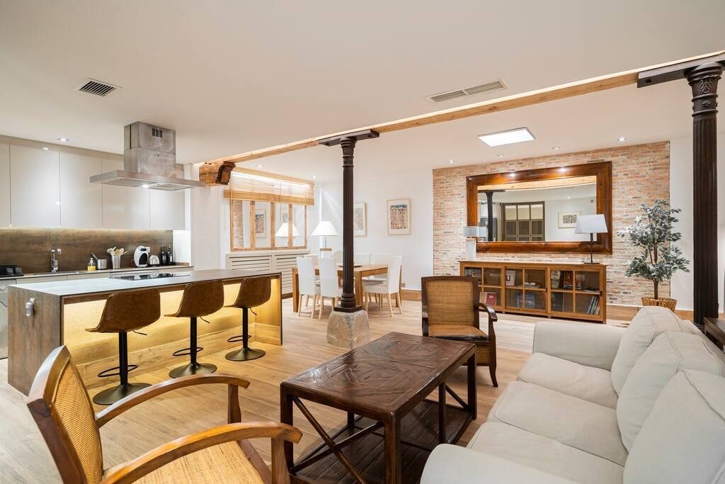 Located just a few steps away from iconic landmarks such as Puerta del Sol, Plaza Mayor and the Prado Museum, our privileged location will allow you to explore the best of Madrid's history, culture and cuisine in complete comfort. The building was completely renovated in 2022, originally built in the 17th century. Enjoy maximum comfort thanks to underfloor heating, air conditioning, Smart TV, high-speed Wi-Fi and a fully equipped kitchen.