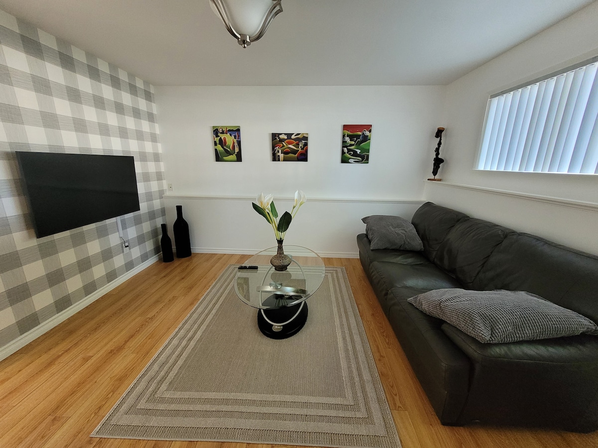 Welcome to our newly renovated self-contained suite, conveniently located close to the city center and attractions. With a private entrance, enjoy privacy and flexibility. The suite, situated on the ground level basement, offers ample natural light. Inside, find a cozy bedroom with a queen-sized bed and a studio double bed with curtains for privacy. The living room also has a sofa bed for additional sleeping space. Stay connected with free WIFI and parking in the safe neighborhood.