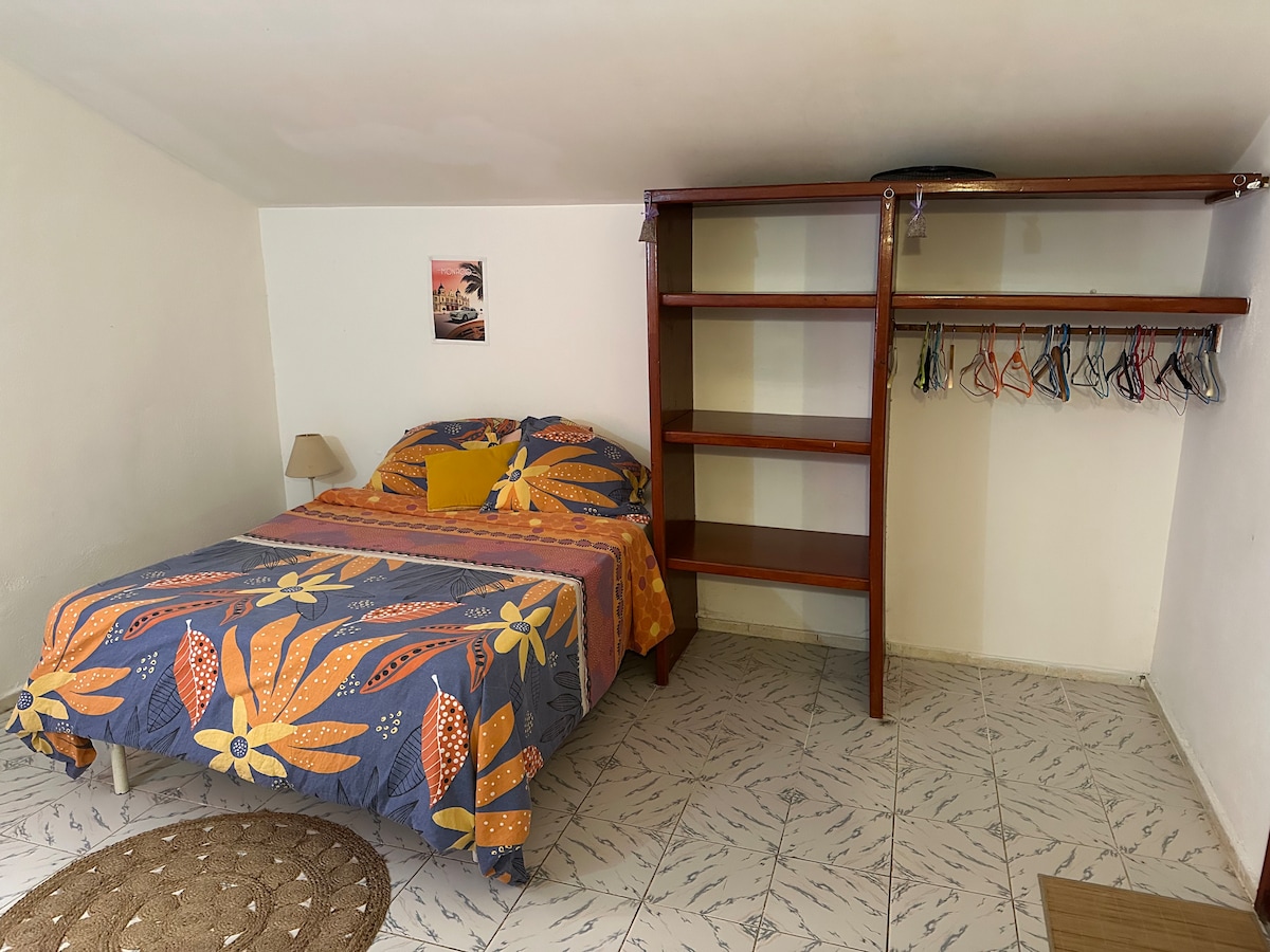 Notre petite famille métissée vous accueille au rez-de-chaussée de notre maison. Construite en 2019, cette chambre totalement indépendante du reste de la maison, sera parfaite pour vos séjours professionnels ou de vacances. Ce logement comporte un lit 2 places, un espace pour se détendre, un frigidaire ainsi qu'une petite terrasse pour se prélasser. Vous aurez aussi accès au wifi. Un parking commun au lotissement vous permettra de garer votre voiture en toute sécurité.