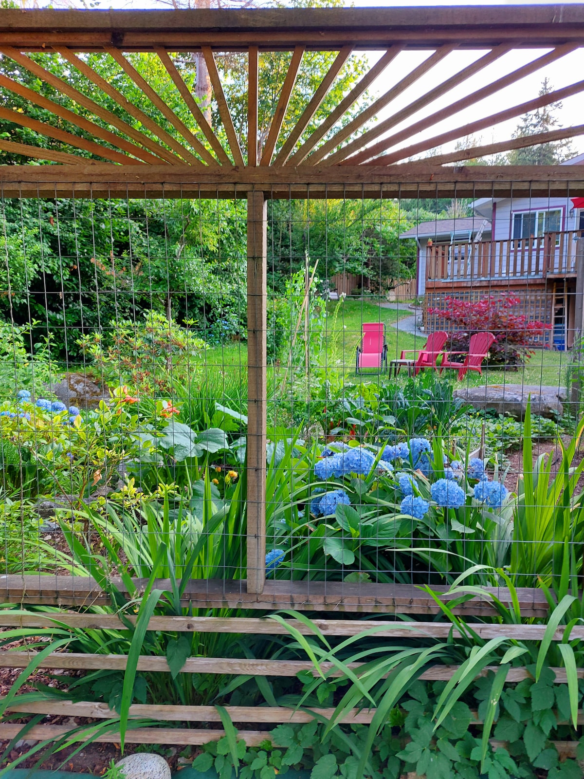 Our get-a-way is an oasis on a beautiful island, at the end of the road. We are very close to Fillongly Park with its beaches, views of nearby Hornby Island, and old growth trails along the creek. Our garden house is tucked behind the main house. It's surrounded by abundant landscape, woodland, a seasonal stream, and our horse pasture. The house and it's surroundings are private and peaceful. You may see the horses, a peacock, tree frogs and deer, but you won't see any traffic or crowds.