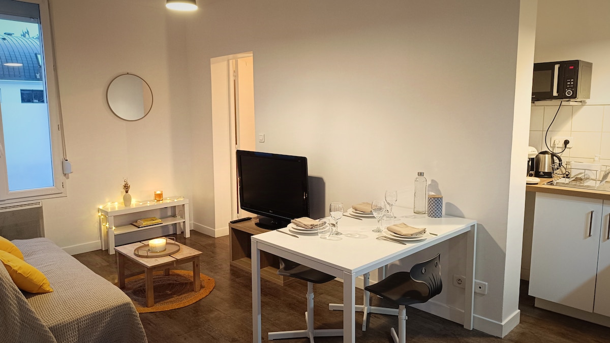 Magnifique Studio de 33m2 en centre ville. 7jours ou plus -20% 28jours ou plus -30% -Entièrement rénové, très lumineux, lumières traversantes et logement sur équipé. -Petit déjeuner inclus pour votre première nuit. -Lit parapluie 👶🏻 -Netflix -Internet Fibre -Situé dans une ruelle paisible, en sens unique, collée au centre ville ainsi qu’au château. -Ruelle avec stationnement payant et parking du château à 100m gratuit. -À pieds: 2mins du château et du centre ville. 10mins de la gare