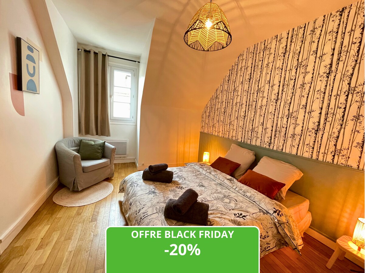 Située à 10 minutes à pieds de l’hyper centre, cet appartement est idéal pour 1 à 2 personnes pour des séjours de courte et moyenne durée. La venue d’une tierce personne n’est pas autorisée. Adapté pour des séjours loisirs ou professionnels, vous y trouverez toutes les commodités à moins de 5min à pieds (pharmacie, boulangerie, bar, restaurant, supermarché…). La gare se situe à une vingtaine de minute à pieds du logement et le stationnement est gratuit dans les rues environnantes.