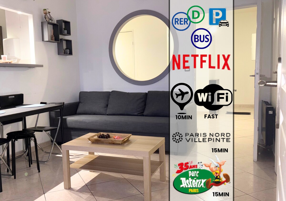 靠近戴高乐机场、阿斯特里克斯、巴黎的美丽公寓