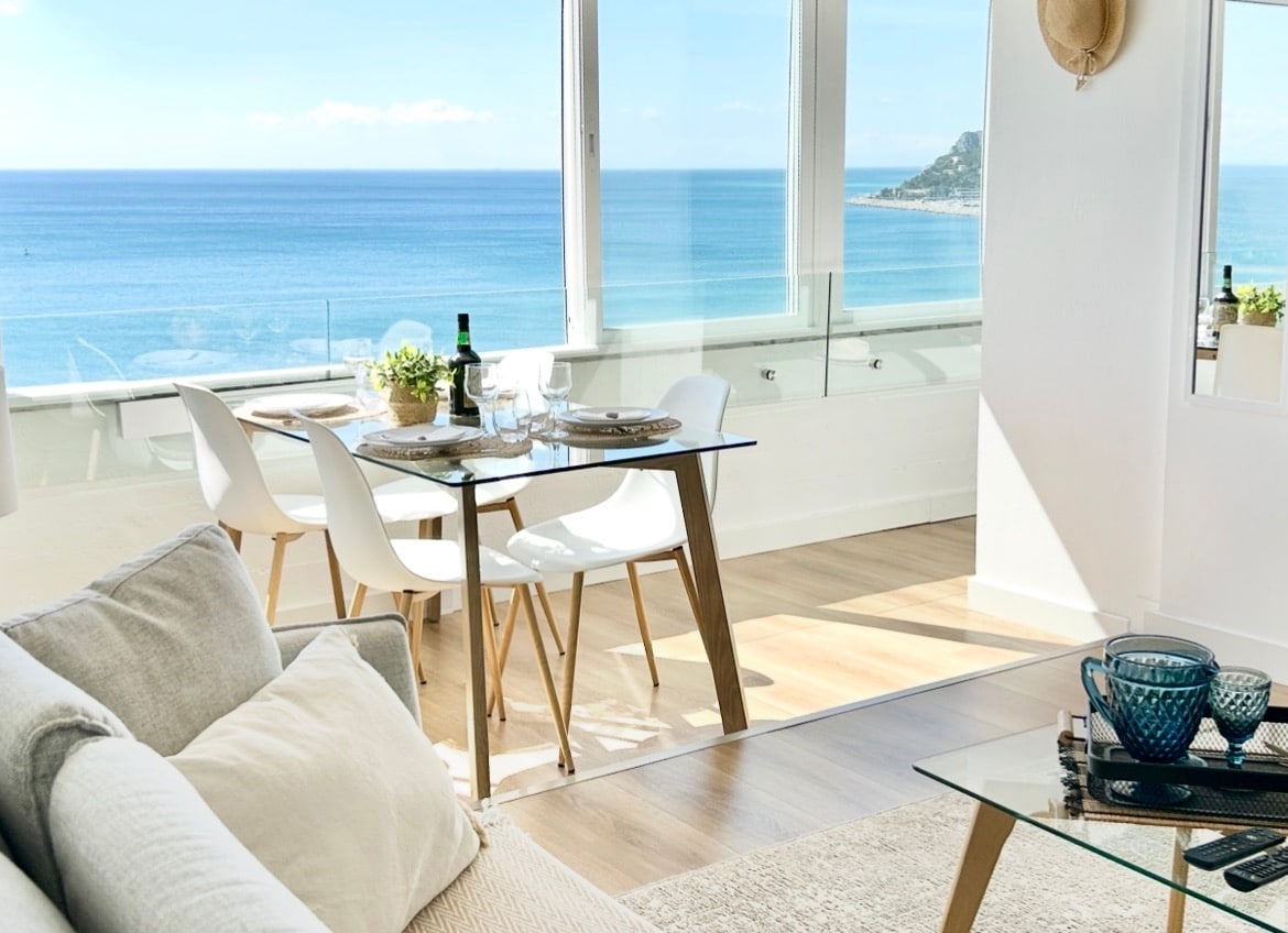 Apartamento reconstruído por arquitecto, excelente privacidade, exposição solar, com wifi, e praia a 150m. 1 suite com SPA e banho turco com aromaterapia. 1 suíte com terraço com vista mar, tela de projeção de cinema. Sala com vista de mar, rio, e terraço, onde poderá disfrutar de uma zona de estar e de um barbecue com grelha em ferro forjado. Perto de restaurantes, cafés e supermercado, e estação de comboio. Ar condicionado e piso aquecido em todas as áreas, TV 4K e box independente por suíte.