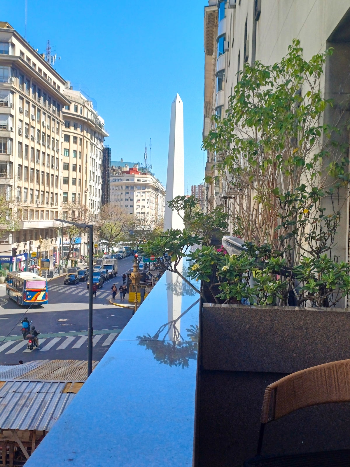 Bienvenidos a este acogedor departamento totalmente equipado para una placentera estadía en el corazón de Buenos Aires. Disfruta de una increíble vista al obelisco y la Av. Corrientes desde nuestro balcón. Ubicado en pleno microcentro porteño, a solo 20 metros del subte y el metrobus. A pocos minutos a pie de emblemáticos lugares de la ciudad, como el Teatro Colón, Puerto Madero y Galerías Pacífico. Totalmente equipado: cocina completa, agua caliente, wifi rápida y smart tv con cable.
