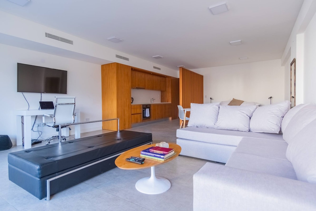 Modern apartment newly furnished and fully equipped in top neiborbood Puerto Madero just a short distance from the city centre, surrounded by parks, restaurants and bars. Plenty of natural light, beautiful living area and very fast Wi-Fi. The ideal place to be as connected or unplugged as you want, in the coolest complex in the area, ZenCity. There's no swimming pool or gym available.