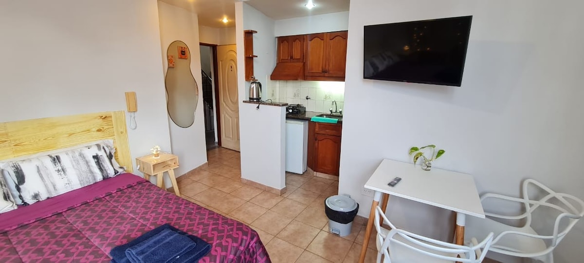 Te invitamos a alojarte en nuestro acogedor monoambiente. El DEPARTAMENTO B se encuentra en un primer piso por escalera. El INGRESO es AUTÓNOMO retirando las llaves en el bar que se encuentra abajo, todos los días excepto los domingos. Situado en un zona comercial, puede ser un poco ruidoso. A 7' a pie del TEATRO VÓRTERIX y 19' del MOVISTAR ARENA. ¡Tenemos las mejores calificaciones! @lavecidechaca