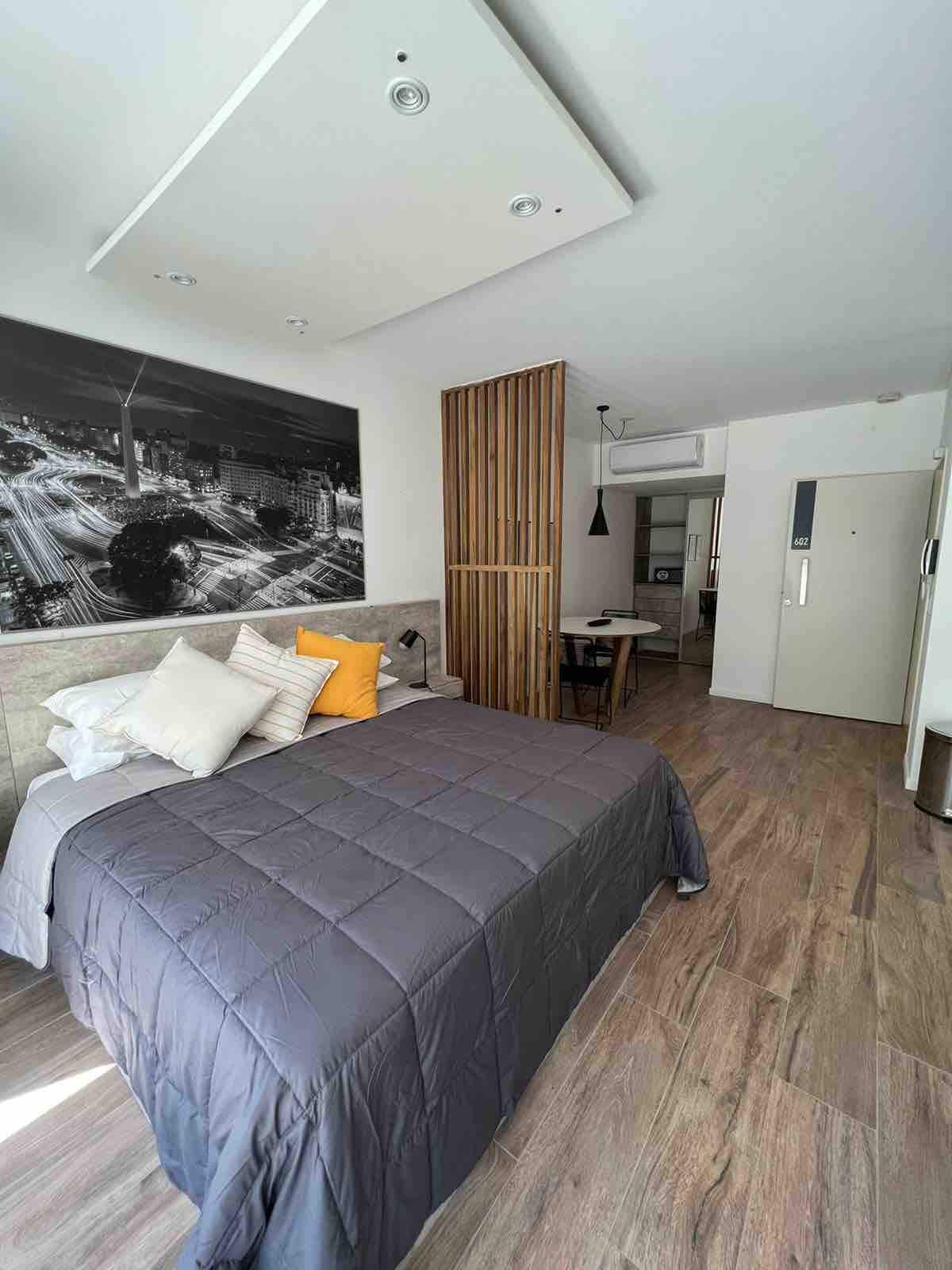 Brand new studio apartment with kitchinette, bathroom and balcony with great views in the heart of Recoleta. Cool modern decoration, fully equipped and safe. SmartTV with cable and Netflix (login with your account). Building with great facilities: heated indoor pool, outdoor pool with solarium, spa with massage room and sauna, and gym. Walking distance to the best restaurants, bars and cafes, as well as to bus and subway station.