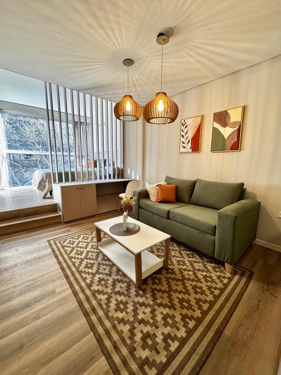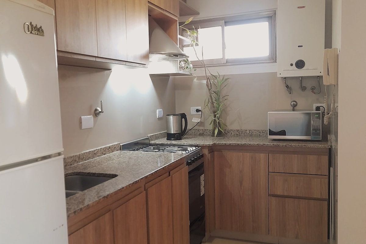 Olvídate de las preocupaciones en este espacio amplio y luminoso, ubicado en una zona residencial con conexiones directas al corazón de la ciudad. Relájate en su dormitorio con cama de dos plazas mirando Netflix en un Smart TV. Disfruta de una gran sala de estar con un sillón cama, ideal 3er huésped, split frío/calor y Wi-Fi. Prepárate algo rico y saludable en su amplia cocina comedor como si estuvieras en tu casa. También tendrás tu baño completo con ducha, inodoro y bidet. Te esperamos!