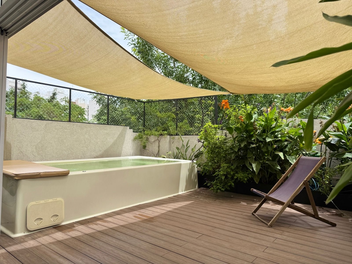 La Maison Depla. Real vintage porteño, con todo el confort del siglo XXI. Para sentir Buenos Aires. Mucho espacio. Ambientes grandes. Sol y luz. Arte y comodidad. Glamour y calidez. Con 4 dormitorios y 3 baños. Cocina completa. Super WIFI. Tiene 5 aires acondicionados. 6 estufas. 5 TV con cable. Para estar como en tu casa. 3 Terrazas con: Solárium. Jacuzzi. Pileta. Ducha exterior. Parrilla. Heladera. Cerca de bares, restaurantes y parques. Con fácil acceso a toda la ciudad. Se alquila entera.