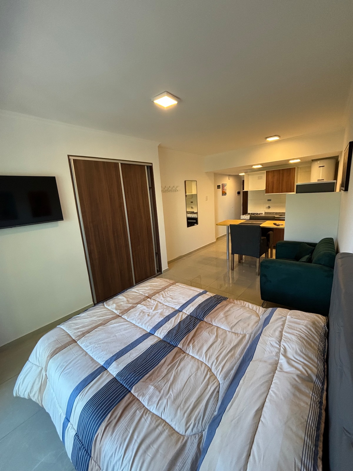 Monoambiente amplio, luminoso y acogedor, ideal para dos personas. Cada rincón está pensado para brindar comodidad: cocina equipada, cama confortable y espacios funcionales. El departamento es de uso exclusivo para las personas registradas. En el 10º piso hay una terraza amplia de uso común, ideal para relajarse o disfrutar al aire libre. Ubicación céntrica, cerca de todo. Un espacio para descansar, reconectar y crear recuerdos inolvidables.