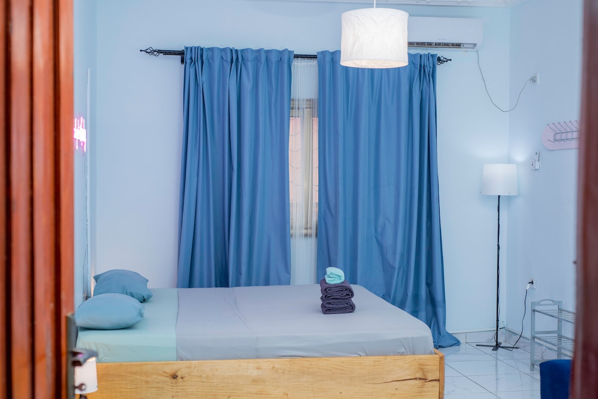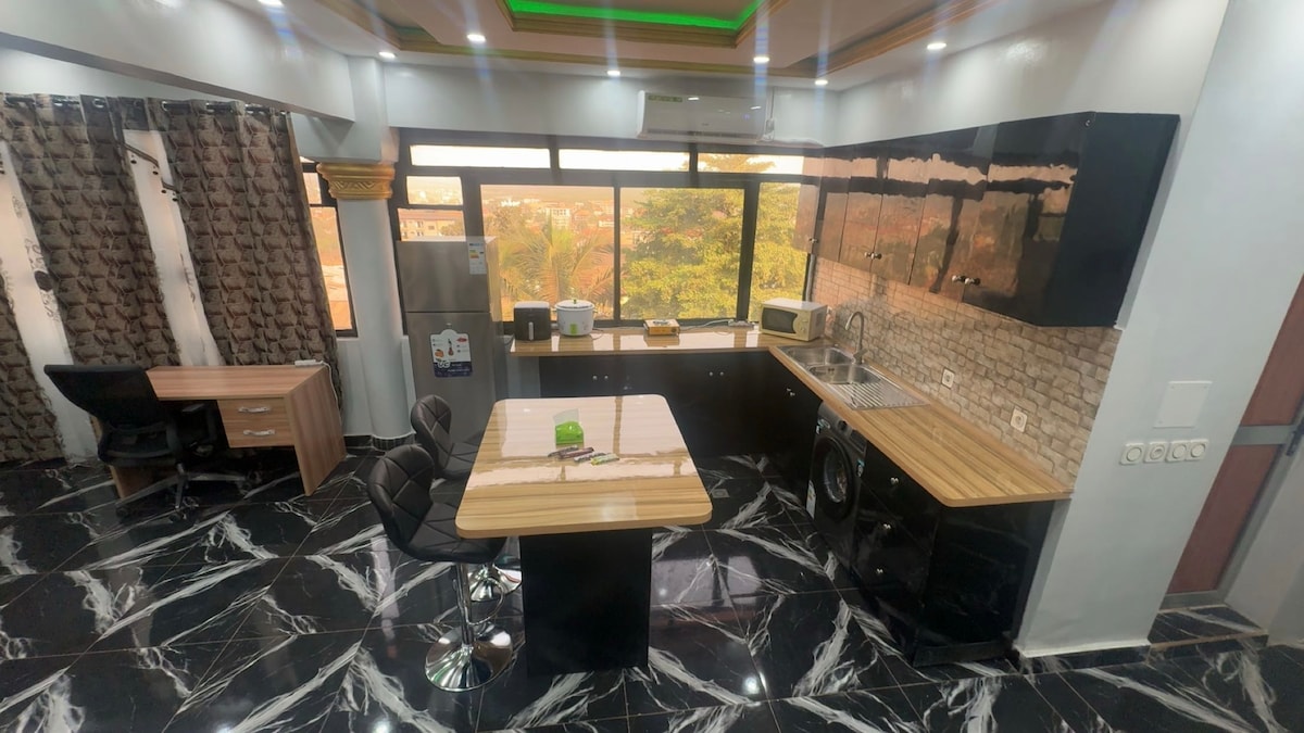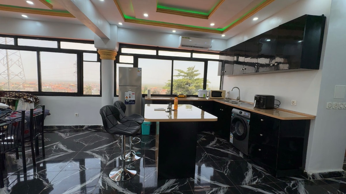 A Secured housing complex for you to enjoy individually or with the whole family. This deluxe apartment is located in the center of Kipe, Conakry, just minutes from popular local attractions such as Prima Center, Lycee Francais and the US Embassy of Guinea. Around 15mn from the airport. Enjoy our premium amenities like 24-7 WIFI connection and electricity, washer& dryer on the premises while you relax to any of our elegantly appointed rooms w/ entertainment system to make ur stay memorable.