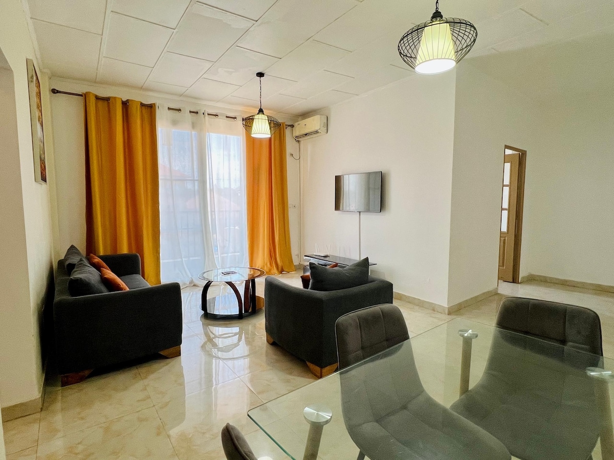 Oubliez vos soucis dans ce logement spacieux et serein de deux chambres. Les meubles sont neufs et l'électricité disponible constamment. Vous pourrez profiter de son jardin intérieur, sa vue imprenable sur la mer. A 5 min de kipé, cet appartement offre tout le confort recherché. il est au dessus de tous les standards que vous avez vu jusqu'à lors en Guinée.