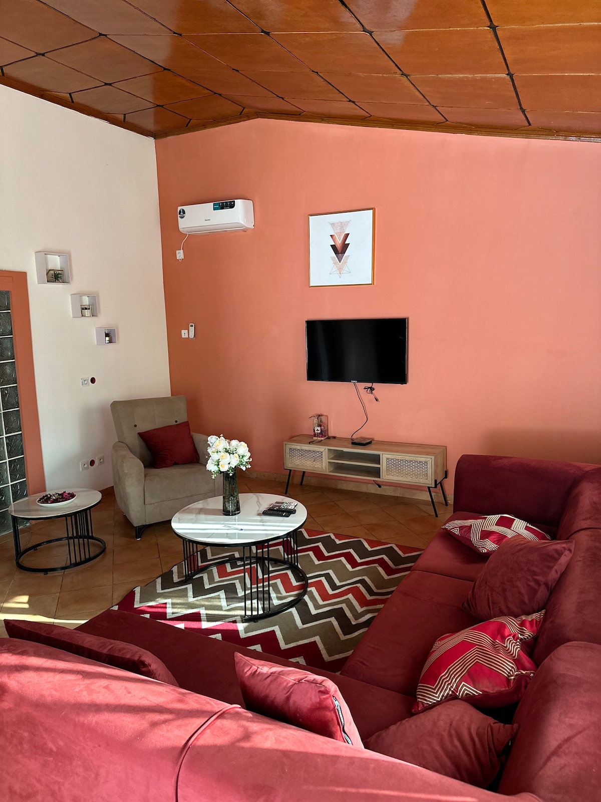 Maison moderne et indépendante, idéale pour un séjour confortable et sécurisé. Située dans une cour privée entièrement fermée a Kobaya, elle offre une totale tranquillité. La maison dispose d’une chambre spacieuse, d’un salon lumineux, d’une cuisine américaine équipée et d’une grande salle de bain. Wi-Fi haut débit, caméra extérieure, détecteur de fumée et coin bureau pour travailler sereinement. Groupe électrogène pour garantir l’électricité à tout moment Forage pour une autonomie totale en eau